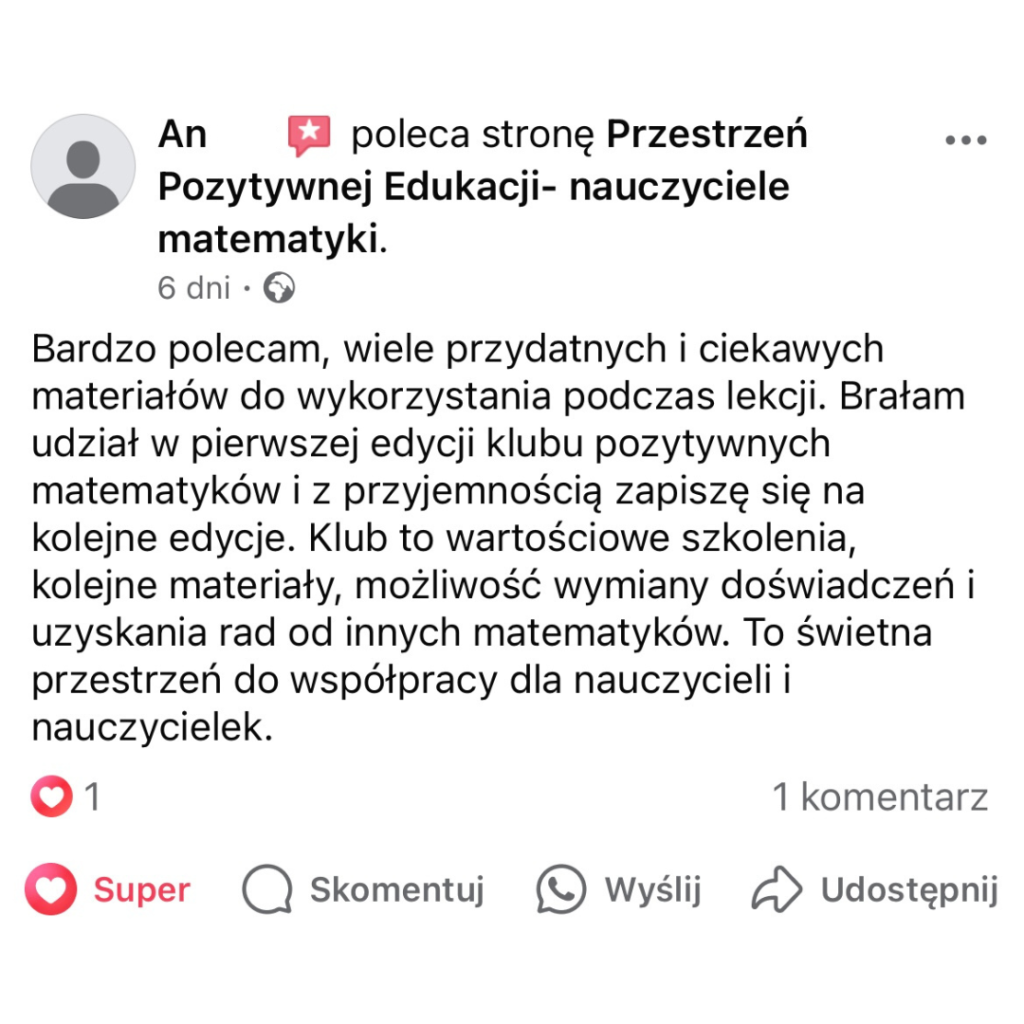 Zależy nam na tym, aby edukacja matematyczna w Polsce miała się lepiej, ale same niewiele zdziałamy. Dopiero łącząc siły możemy realnie wpłynąć na zmiany w szkołach. I wiemy, że to możliwe – pierwsza edycja Klubu Pozytywnych Matematyków pokazała nam, że nauczycielki i nauczyciele matematyki potrafią stworzyć niesamowitą społeczność. To miejsce, w którym każdy może zyskać wsparcie, czerpać inspirację i dzielić się swoimi sukcesami. Dołącz do nas i razem zmieńmy oblicze nauczania matematyki!