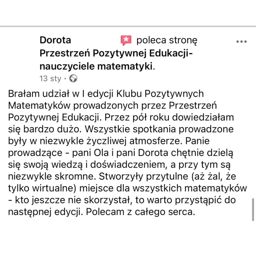 Jako nauczycielki pracujące w różnych miejscach i na różnych zasadach, również w szkołach publicznych, dokładnie wiemy jak wygląda codzienność nauczyciela w Polsce. Same niejednokrotnie załamywałyśmy ręce, przechodziłyśmy kryzysy i płakałyśmy z frustracji i niemocy. Wiemy też jak bardzo potrzebujemy zmian w edukacji, a także innych, życzliwych osób wokół i pomocy, które są sprawdzone i dopasowane do potrzeb współczesnych uczniów. Dlatego też w 2021 roku zaczęłyśmy działać jako Przestrzeń Pozytywnej Edukacji z nadzieją, że znajdą się inni nauczyciele, korepetytorzy, osoby pomagające dzieciom w nauce matematyki, które będą chciały do nas dołączyć i inaczej spojrzeć na edukację matematyczną w szkole i poza nią.